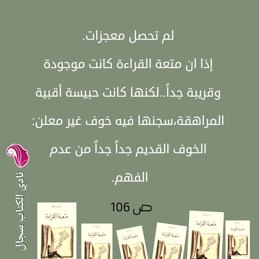 هنا شعرنا بالإنصاف الكامل.. بأن لنا الحق في أن نصمت عم قرأنا .. أن لا نبارح ذلك العالم الذي بات جزء من قصتنا حين انتهينا من قصته.. و أمنا من مباغتة مخاتل يختبئ خلف جلدة ظهر الكتاب مستعدا ليمطرنا بتساؤلات لا تعنيه إجابتها بقد ما يعنيه توافقها مع أهدافه.. نعم القارئ انا وحاصد الاهداف هو.. والقراءة حب لا مرتع تحقيق أهداف..
