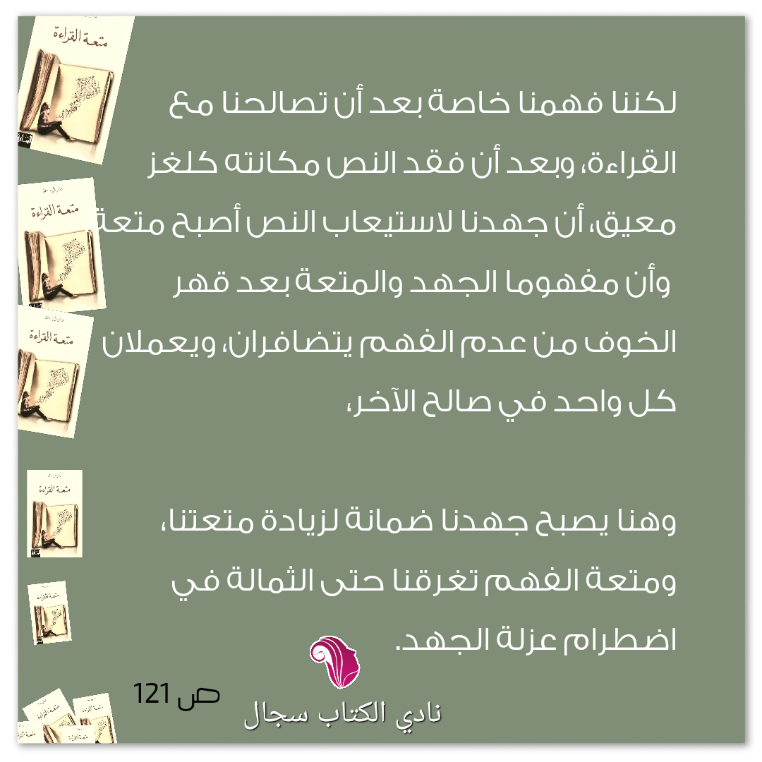 هنا شعرنا بالإنصاف الكامل.. بأن لنا الحق في أن نصمت عم قرأنا .. أن لا نبارح ذلك العالم الذي بات جزء من قصتنا حين انتهينا من قصته.. و أمنا من مباغتة مخاتل يختبئ خلف جلدة ظهر الكتاب مستعدا ليمطرنا بتساؤلات لا تعنيه إجابتها بقد ما يعنيه توافقها مع أهدافه.. نعم القارئ انا وحاصد الاهداف هو.. والقراءة حب لا مرتع تحقيق أهداف..